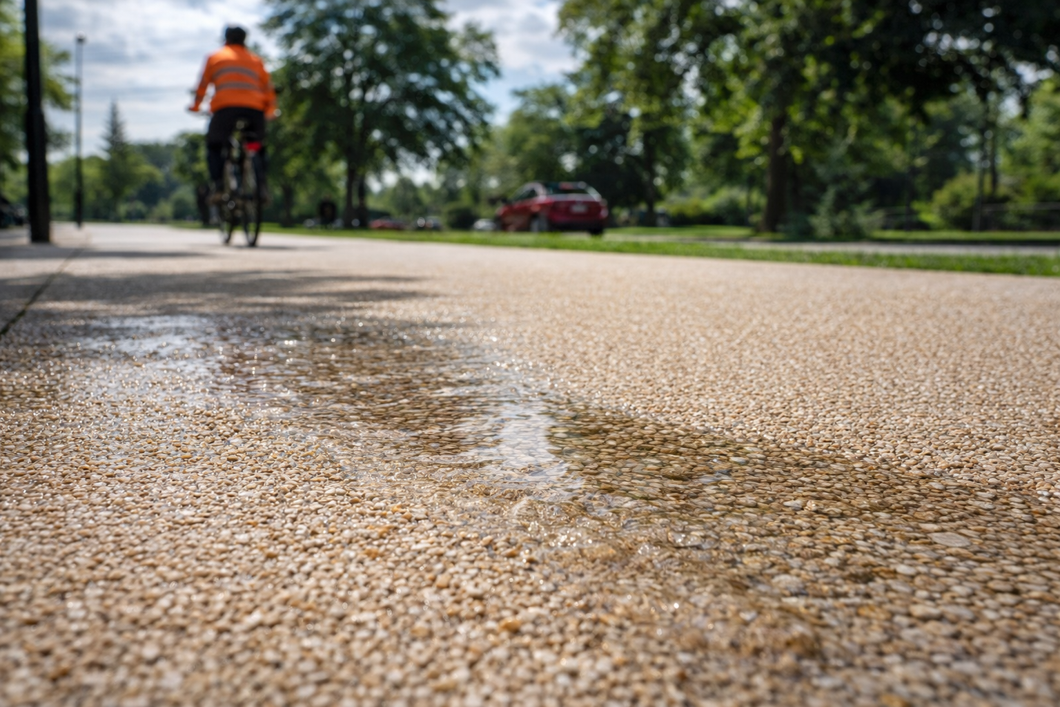 Con sistemi drenanti/porosi (stile Rasocrete) puoi ottenere una superficie che favorisce la gestione delle acque piovane e risulta utile in esterni (percorsi, piste ciclabili, aree carrabili/pedonali)
